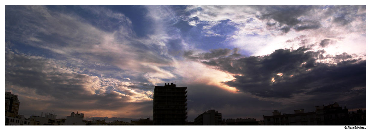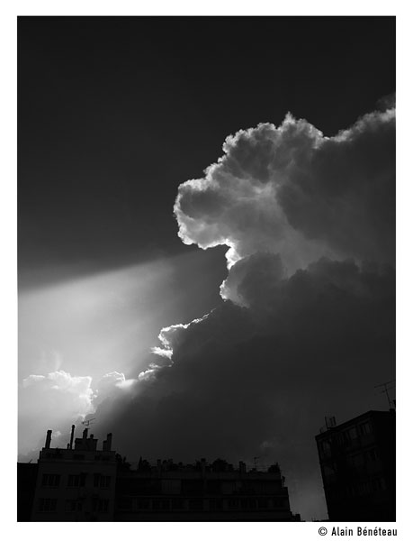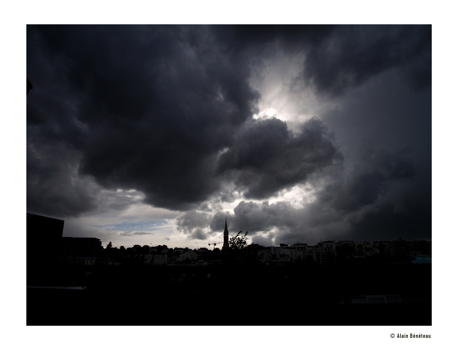 Le 19 juin vers 8h30, un ciel annonciateur des orages potentiels de la journée me fait traîner en chemin. Contemplation des formes, des diffusions, des opacités d'encres et des mouvements langoureux de l'atmosphère chargée d'humidité.